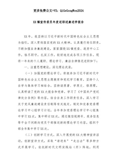 【七哥公文】2025年:XX镇宣传委员年度述职述廉述学报告+更多免费公文+VX:QiGeGongWen2024+更多免费公文+VX:QiGeGongWen2024