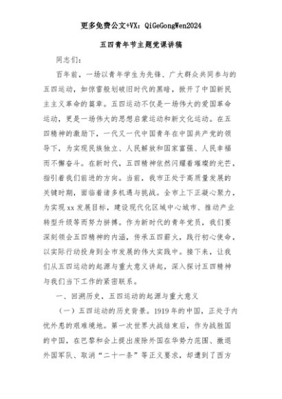 【七哥公文】2025年:五四青年节主题党课讲稿+更多免费公文+VX:QiGeGongWen2024+更多免费公文+VX:QiGeGongWen2024