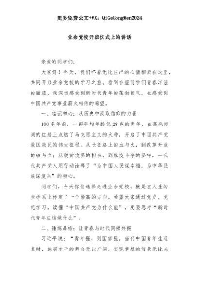 【七哥公文】2025年:业余党校开班仪式上的讲话+更多免费公文+VX:QiGeGongWen2024+更多免费公文+VX:QiGeGongWen2024