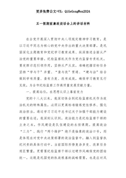 【七哥公文】2025年:五一假期前廉政谈话会上的讲话材料+更多免费公文+VX:QiGeGongWen2024+更多免费公文+VX:QiGeGongWen2024