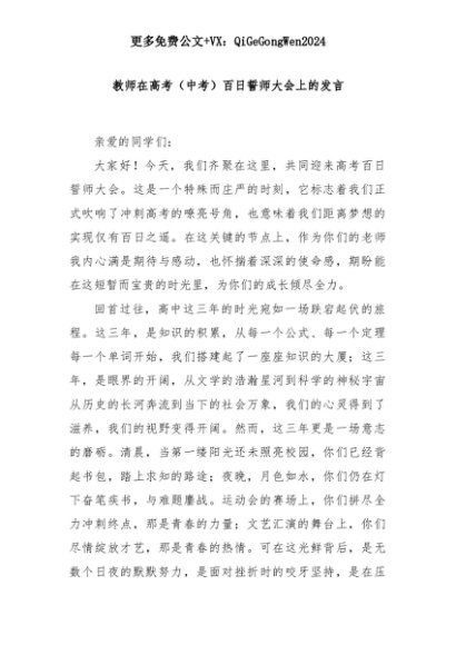 【七哥公文】2025年:教师在高考(中考)百日誓师大会上的发言+更多免费公文+VX:QiGeGongWen2024+更多免费公文+VX:QiGeGongWen2024