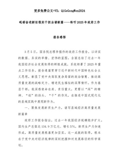 【七哥公文】2025年:砥砺奋进新征程实干担当谱新篇——聆听2025年政府工作报告感悟+更多免费公文+VX:QiGeGongWen2024+更多免费公文+VX:QiGeGongWen2024