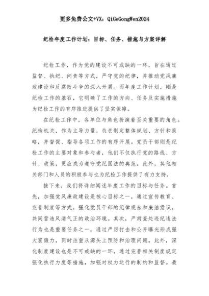 【七哥公文】2025年:纪检年度工作计划:目标、任务、措施与方案详解+更多免费公文+VX:QiGeGongWen2024+更多免费公文+VX:QiGeGongWen2024