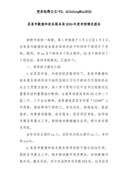 【七哥公文】2025年:某某市数据和政务服务局2024年度考核情况报告+更多免费公文+VX:QiGeGongWen2024+更多免费公文+VX:QiGeGongWen2024
