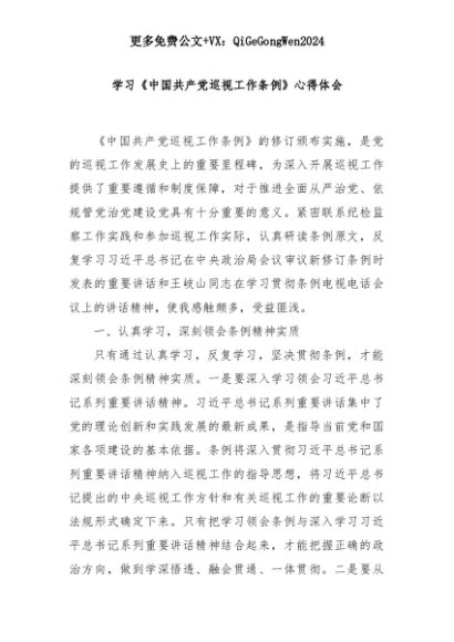 【七哥公文】2025年:学习《中国共产党巡视工作条例》心得体会+更多免费公文+VX:QiGeGongWen2024+更多免费公文+VX:QiGeGongWen2024