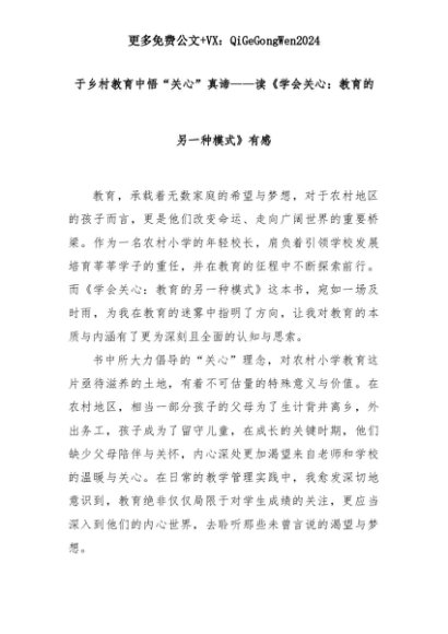 【七哥公文】2025年:于乡村教育中悟“关心”真谛——读《学会关心:教育的另一种模式》有感+更多免费公文+VX:QiGeGongWen2024+更多免费公文+VX:QiGeGongWen2024