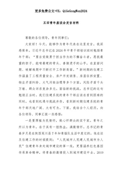 【七哥公文】2025年:五四青年座谈会发言材料+更多免费公文+VX:QiGeGongWen2024+更多免费公文+VX:QiGeGongWen2024