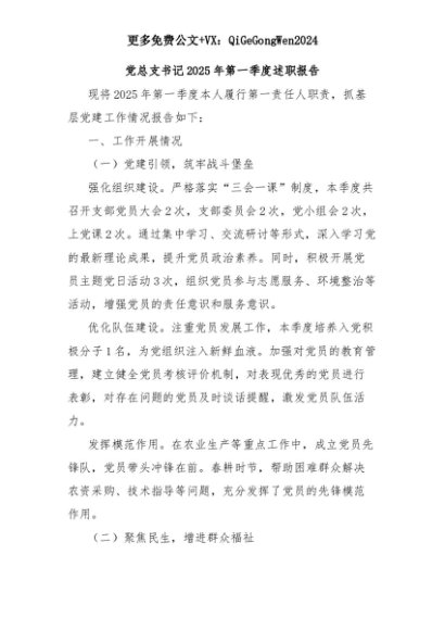 【七哥公文】2025年:党总支书记2025年第一季度述职报告+更多免费公文+VX:QiGeGongWen2024+更多免费公文+VX:QiGeGongWen2024