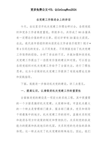 【七哥公文】2025年:在党建工作推进会上的讲话+更多免费公文+VX:QiGeGongWen2024+更多免费公文+VX:QiGeGongWen2024