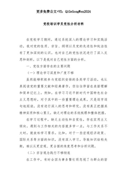 【七哥公文】2025年:党校培训学员党性分析材料+更多免费公文+VX:QiGeGongWen2024+更多免费公文+VX:QiGeGongWen2024