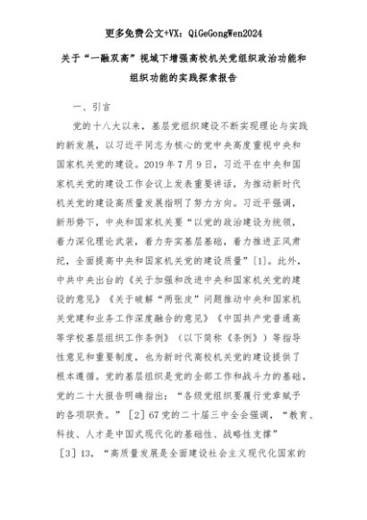 【七哥公文】2025年:关于“一融双高”视域下增强高校机关党组织政治功能和组织功能的实践探索报告+更多免费公文+VX:QiGeGongWen2024+更多免费公文+VX:QiGeGongWen2024