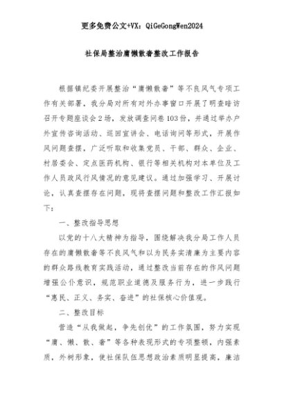 【七哥公文】2025年:社保局整治庸懒散奢整改工作报告+更多免费公文+VX:QiGeGongWen2024+更多免费公文+VX:QiGeGongWen2024
