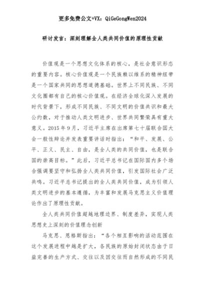 【七哥公文】2025年:研讨发言:深刻理解全人类共同价值的原理性贡献+更多免费公文+VX:QiGeGongWen2024+更多免费公文+VX:QiGeGongWen2024