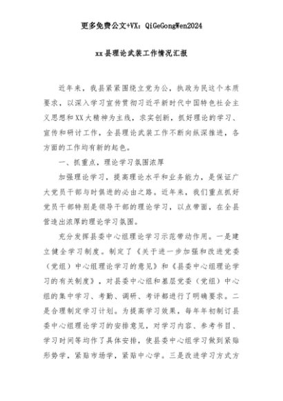 【七哥公文】2025年:xx县理论武装工作情况汇报+更多免费公文+VX:QiGeGongWen2024+更多免费公文+VX:QiGeGongWen2024
