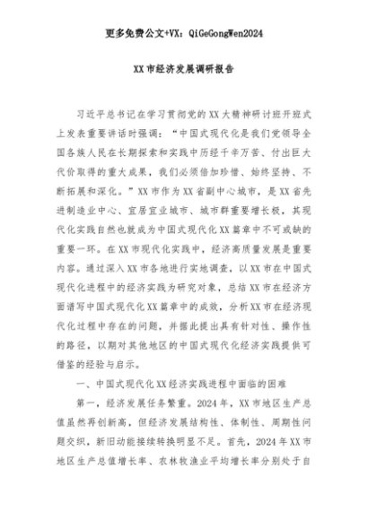 【七哥公文】2025年:XX市经济发展调研报告+更多免费公文+VX:QiGeGongWen2024+更多免费公文+VX:QiGeGongWen2024