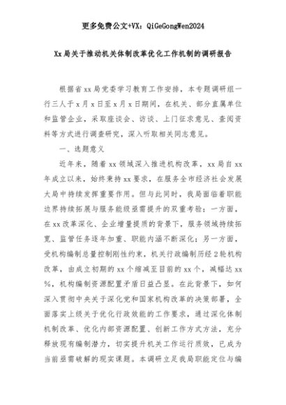 【七哥公文】2025年:Xx局关于推动机关体制改革优化工作机制的调研报告+更多免费公文+VX:QiGeGongWen2024+更多免费公文+VX:QiGeGongWen2024