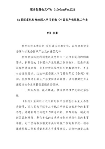 【七哥公文】2025年:Xx县巡察机构持续深入学习贯彻《中国共产党巡视工作条例》合集+更多免费公文+VX:QiGeGongWen2024+更多免费公文+VX:QiGeGongWen2024