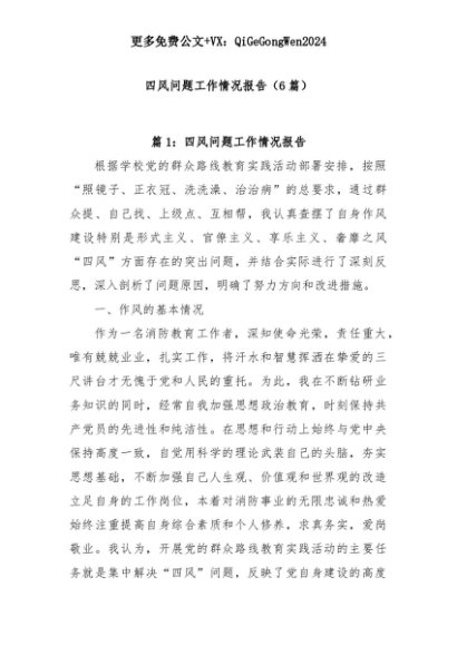 【七哥公文】2025年:(6篇)四风问题工作情况报告+更多免费公文+VX:QiGeGongWen2024+更多免费公文+VX:QiGeGongWen2024
