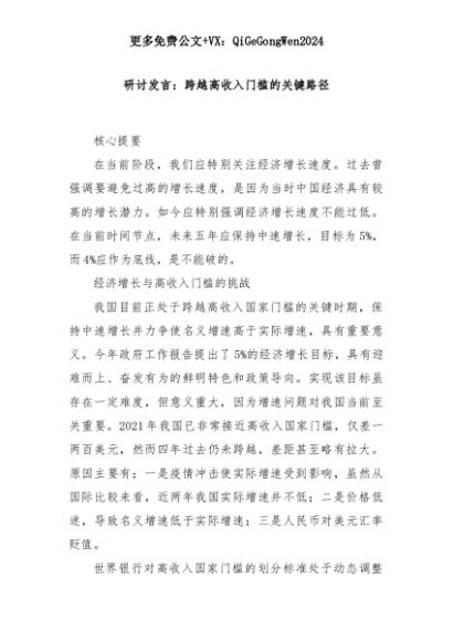 【七哥公文】2025年:研讨发言:跨越高收入门槛的关键路径+更多免费公文+VX:QiGeGongWen2024+更多免费公文+VX:QiGeGongWen2024