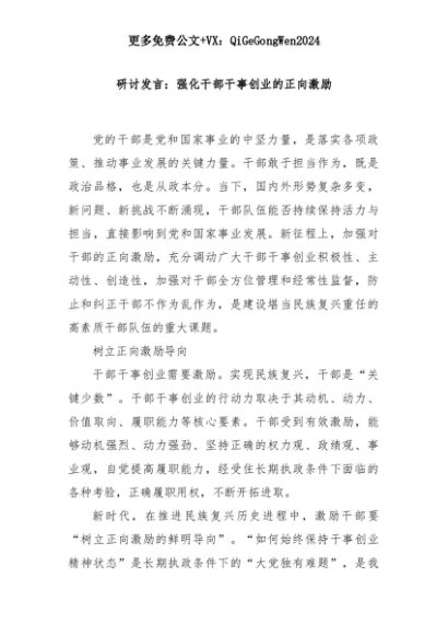 【七哥公文】2025年:研讨发言:强化干部干事创业的正向激励+更多免费公文+VX:QiGeGongWen2024+更多免费公文+VX:QiGeGongWen2024