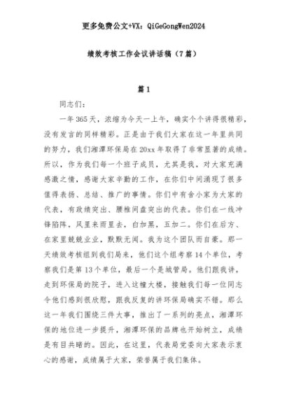 【七哥公文】2025年:(7篇)绩效考核工作会议讲话稿+更多免费公文+VX:QiGeGongWen2024+更多免费公文+VX:QiGeGongWen2024