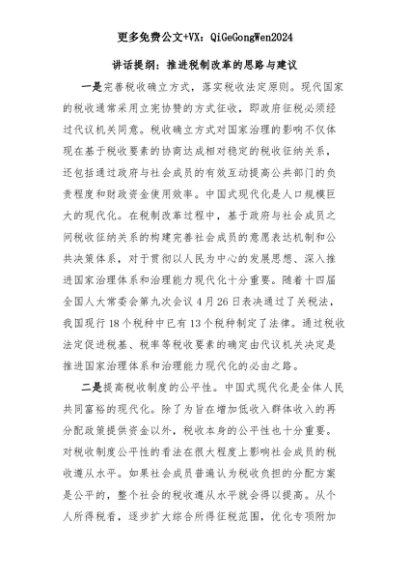【七哥公文】2025年:讲话提纲:推进税制改革的思路与建议+更多免费公文+VX:QiGeGongWen2024+更多免费公文+VX:QiGeGongWen2024