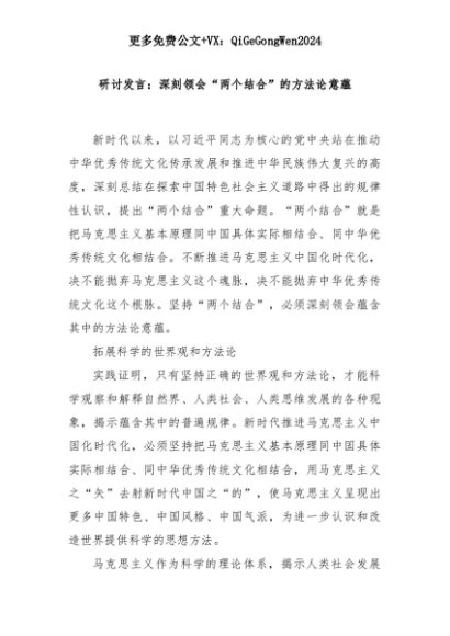 【七哥公文】2025年:研讨发言:深刻领会“两个结合”的方法论意蕴+更多免费公文+VX:QiGeGongWen2024+更多免费公文+VX:QiGeGongWen2024