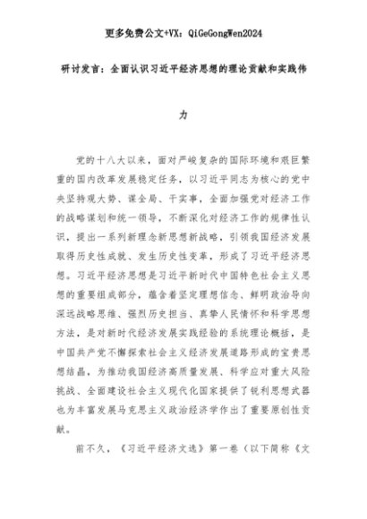 【七哥公文】2025年:研讨发言:全面认识习近平经济思想的理论贡献和实践伟力+更多免费公文+VX:QiGeGongWen2024+更多免费公文+VX:QiGeGongWen2024