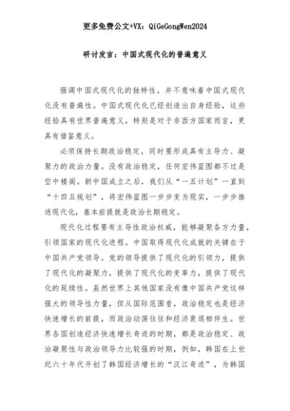 【七哥公文】2025年:研讨发言:中国式现代化的普遍意义+更多免费公文+VX:QiGeGongWen2024+更多免费公文+VX:QiGeGongWen2024