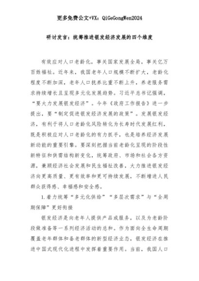 【七哥公文】2025年:研讨发言:统筹推进银发经济发展的四个维度+更多免费公文+VX:QiGeGongWen2024+更多免费公文+VX:QiGeGongWen2024