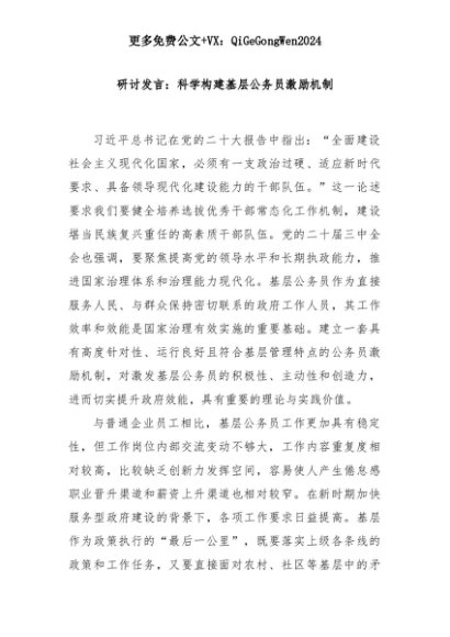 【七哥公文】2025年:研讨发言:科学构建基层公务员激励机制+更多免费公文+VX:QiGeGongWen2024+更多免费公文+VX:QiGeGongWen2024