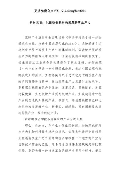 【七哥公文】2025年:研讨发言:以推动创新加快发展新质生产力+更多免费公文+VX:QiGeGongWen2024+更多免费公文+VX:QiGeGongWen2024
