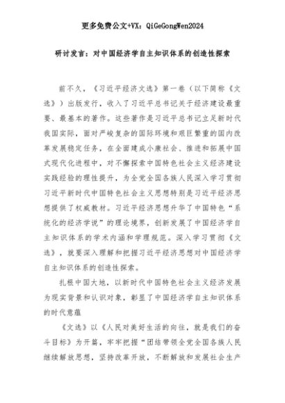 【七哥公文】2025年:研讨发言:对中国经济学自主知识体系的创造性探索+更多免费公文+VX:QiGeGongWen2024+更多免费公文+VX:QiGeGongWen2024