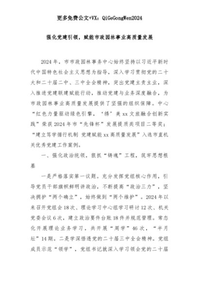 【七哥公文】2025年:强化党建引领,赋能市政园林事业高质量发展+更多免费公文+VX:QiGeGongWen2024+更多免费公文+VX:QiGeGongWen2024