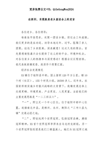 【七哥公文】2025年:在深圳、东莞敖泉老乡座谈会上的发言+更多免费公文+VX:QiGeGongWen2024+更多免费公文+VX:QiGeGongWen2024
