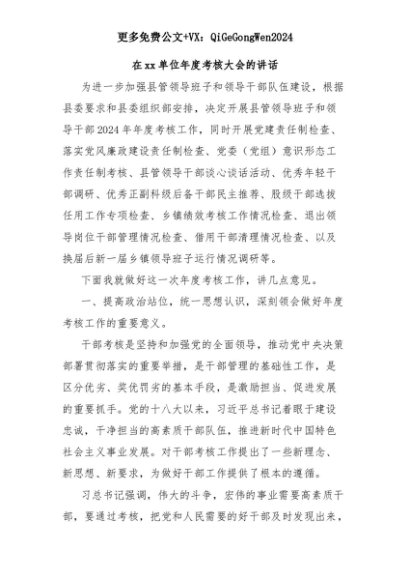 【七哥公文】2025年:在xx单位年度考核大会的讲话+更多免费公文+VX:QiGeGongWen2024+更多免费公文+VX:QiGeGongWen2024