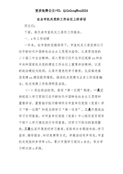 【七哥公文】2025年:在全市机关党的工作会议上的讲话+更多免费公文+VX:QiGeGongWen2024+更多免费公文+VX:QiGeGongWen2024