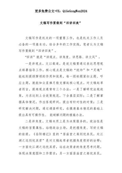 【七哥公文】2025年:文稿写作要做到“四讲四美”+更多免费公文+VX:QiGeGongWen2024+更多免费公文+VX:QiGeGongWen2024