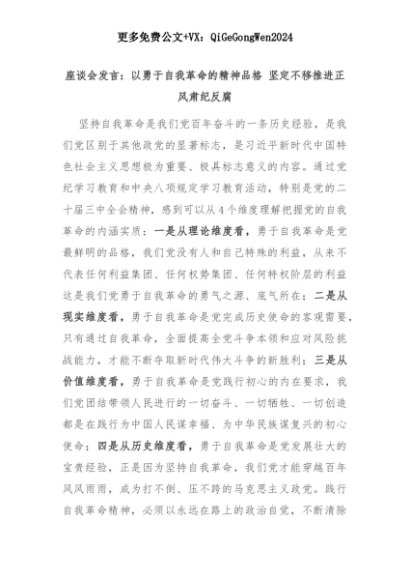 【七哥公文】2025年:座谈会发言:以勇于自我革命的精神品格 坚定不移推进正风肃纪反腐+更多免费公文+VX:QiGeGongWen2024+更多免费公文+VX:QiGeGongWen2024