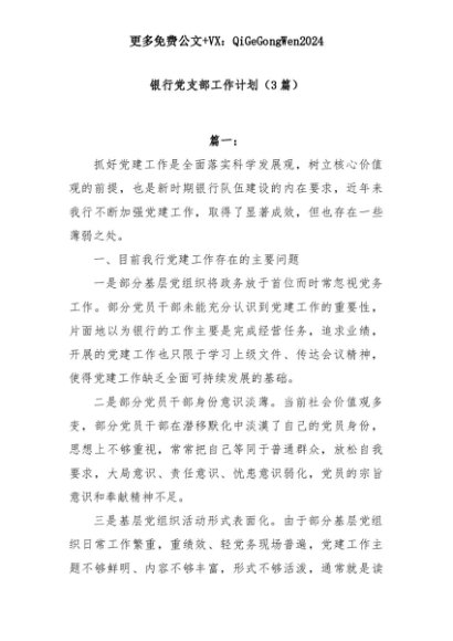 【七哥公文】2025年:(3篇)银行党支部工作计划+更多免费公文+VX:QiGeGongWen2024+更多免费公文+VX:QiGeGongWen2024