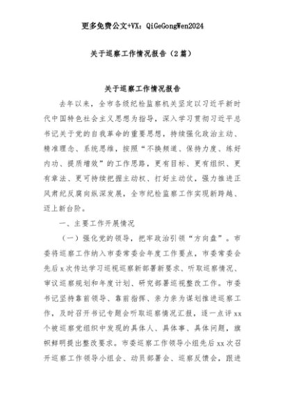 【七哥公文】2025年:(2篇)关于巡察工作情况报告+更多免费公文+VX:QiGeGongWen2024+更多免费公文+VX:QiGeGongWen2024