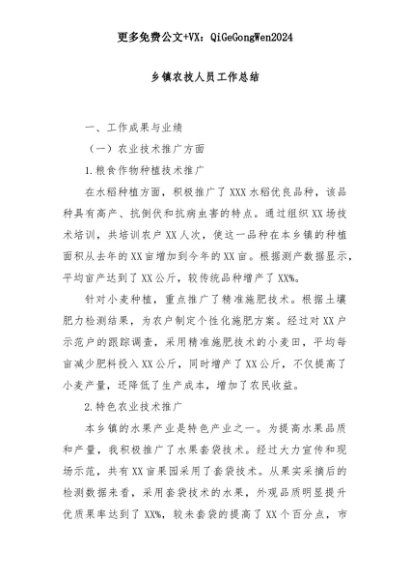 【七哥公文】2025年:乡镇农技人员工作总结+更多免费公文+VX:QiGeGongWen2024+更多免费公文+VX:QiGeGongWen2024
