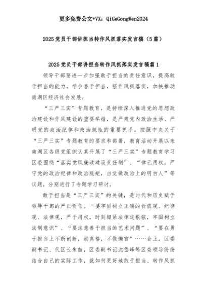 【七哥公文】2025年:(5篇)2025党员干部讲担当转作风抓落实发言稿+更多免费公文+VX:QiGeGongWen2024+更多免费公文+VX:QiGeGongWen2024