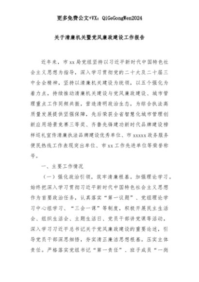 【七哥公文】2025年:关于清廉机关暨党风廉政建设工作报告+更多免费公文+VX:QiGeGongWen2024+更多免费公文+VX:QiGeGongWen2024