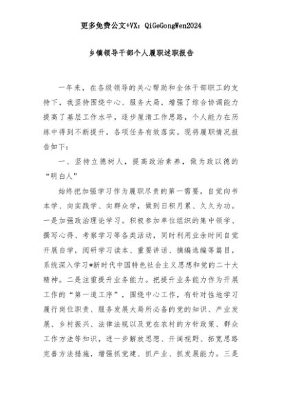 【七哥公文】2025年:乡镇领导干部个人履职述职报告+更多免费公文+VX:QiGeGongWen2024+更多免费公文+VX:QiGeGongWen2024