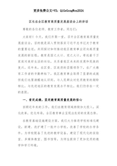 【七哥公文】2025年:区长在全区教育高质量发展座谈会上的讲话+更多免费公文+VX:QiGeGongWen2024+更多免费公文+VX:QiGeGongWen2024