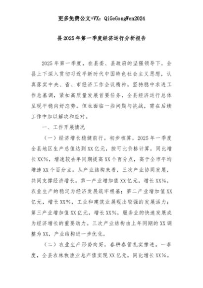 【七哥公文】2025年:县2025年第一季度经济运行分析报告+更多免费公文+VX:QiGeGongWen2024+更多免费公文+VX:QiGeGongWen2024