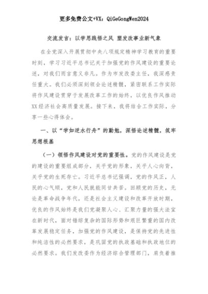 【七哥公文】2025年:交流发言:以学思践悟之风 塑发改事业新气象+更多免费公文+VX:QiGeGongWen2024+更多免费公文+VX:QiGeGongWen2024
