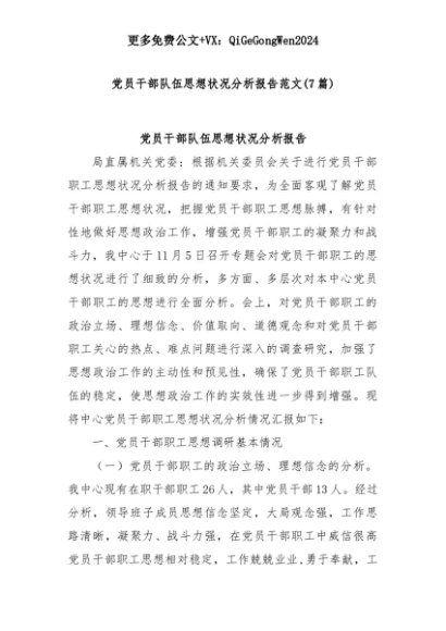 【七哥公文】2025年:(7篇)党员干部队伍思想状况分析报告范文+更多免费公文+VX:QiGeGongWen2024+更多免费公文+VX:QiGeGongWen2024