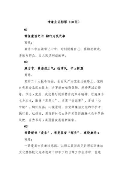 / 【七哥公文】2024年:清廉企业标语(50组)+更多免费公文+VX:QiGeGongWen2024